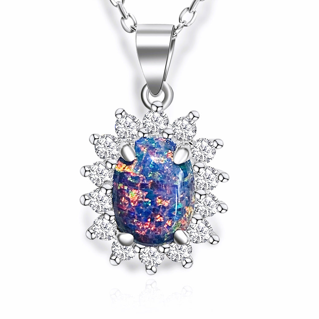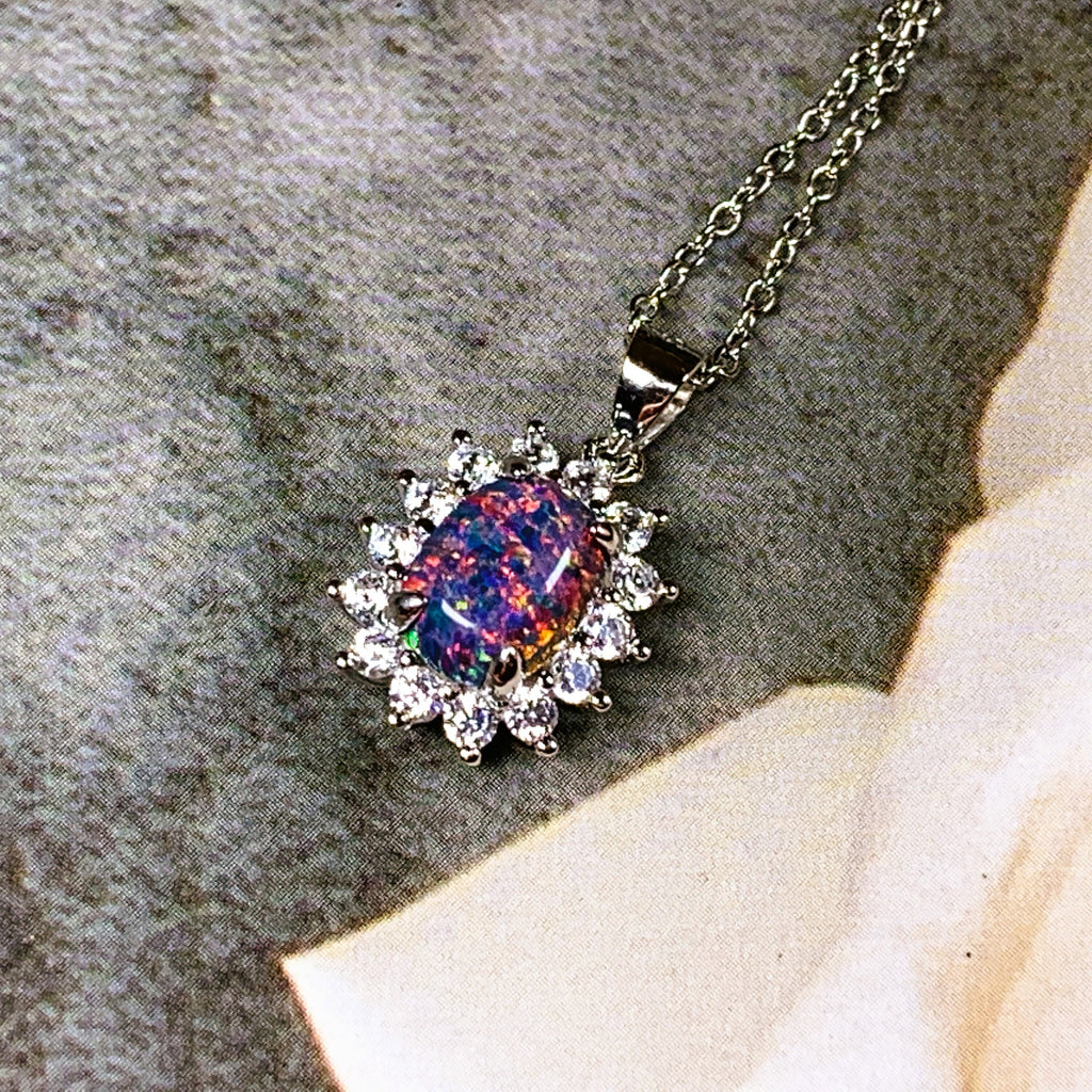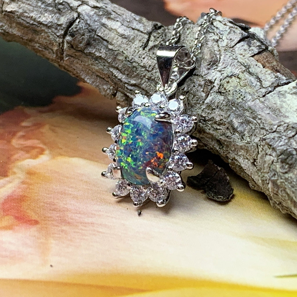 Heart's Art Australia- Play of Colour - Sterling Silver Cluster Created 8x6mm Solid Black Blue Red Fire Opal pendant- Gift for women