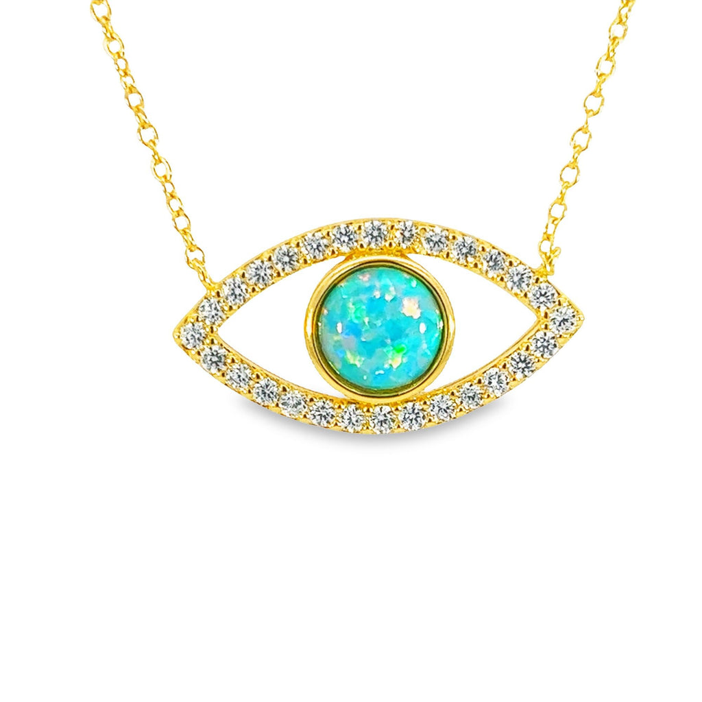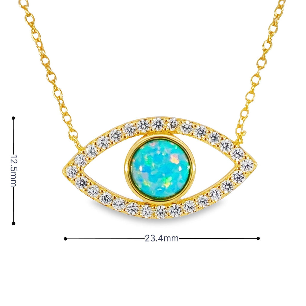 Hearts Art Australia- Gold over Silver Evil Eye Necklace - Dainty Minimalist Jewelry, Gift for Her, Women's Created Turquoise Opal Necklace