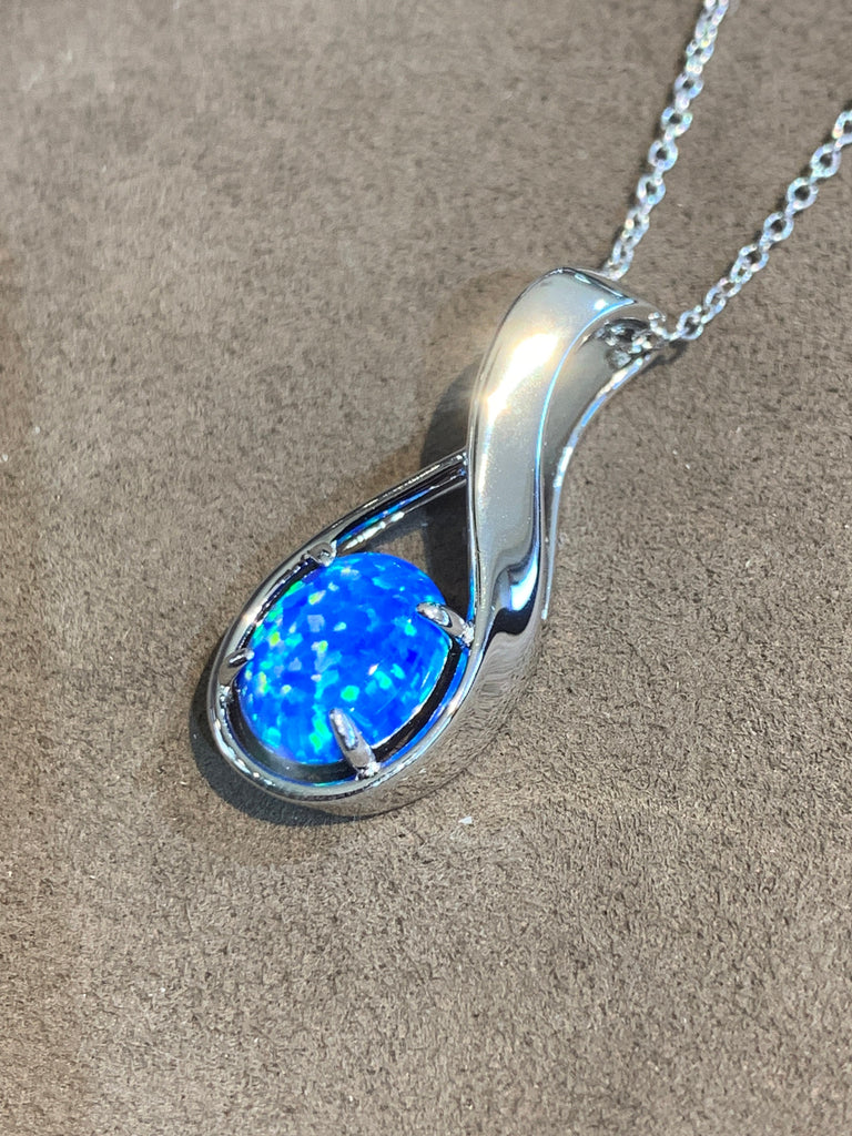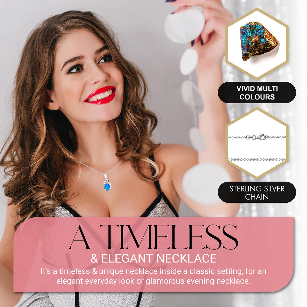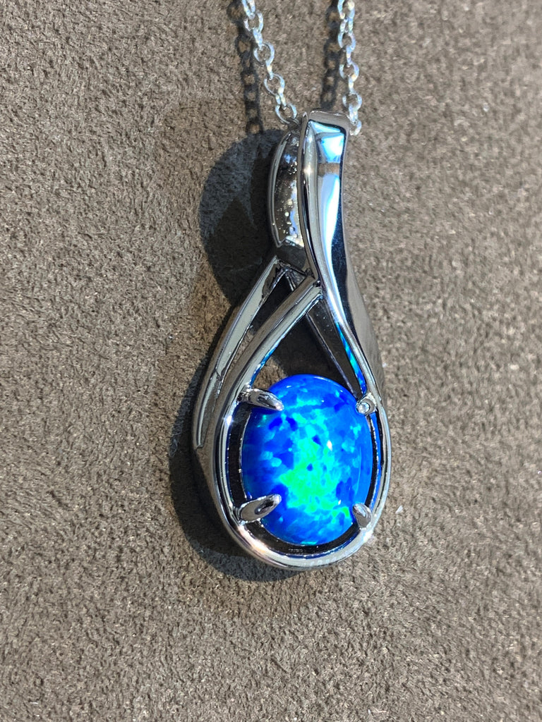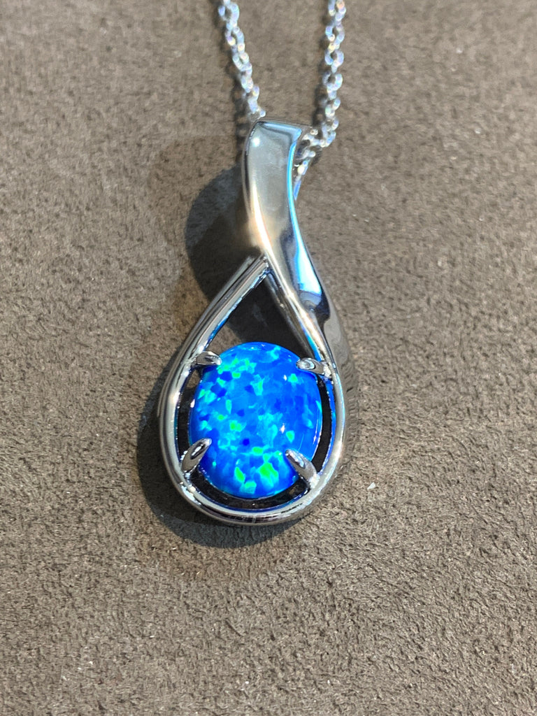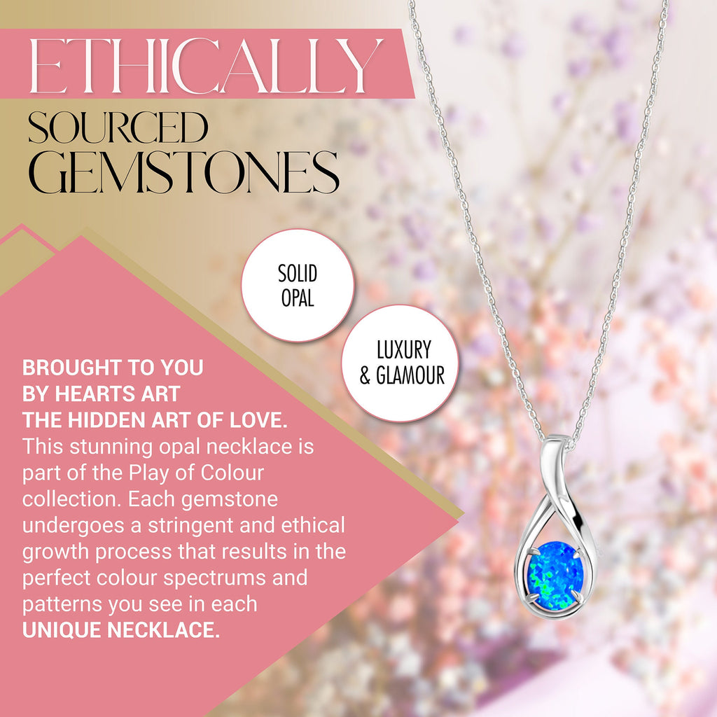 Heart's Art Australia- Play of Colour - Sterling Silver Created 10x8mm Solid Fire Blue Opal Flame infinity Necklace- Great Gift for women!