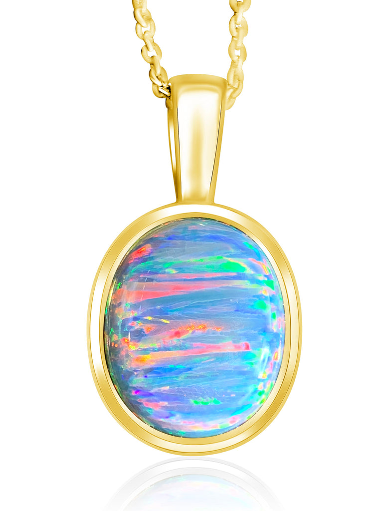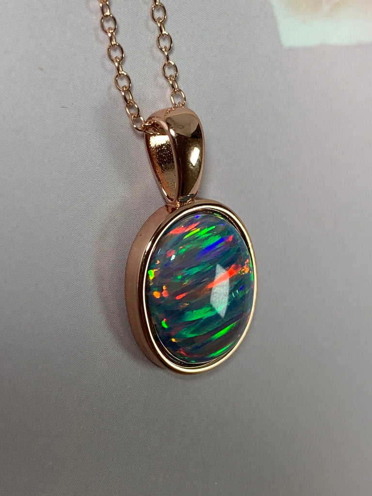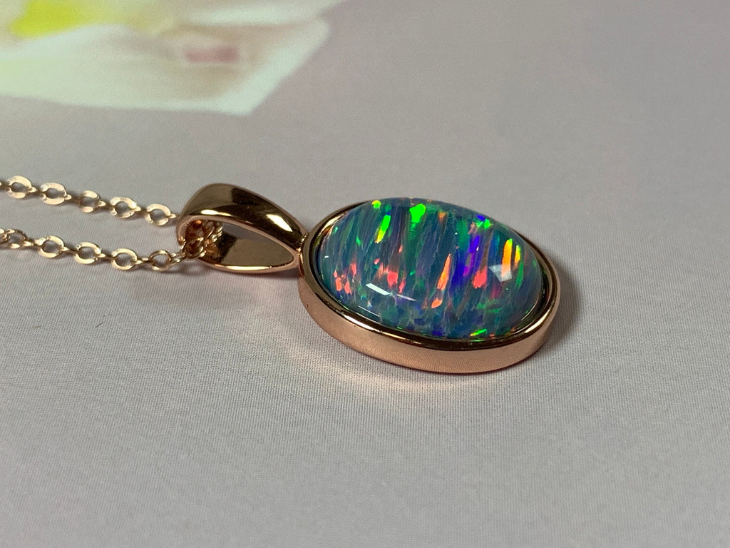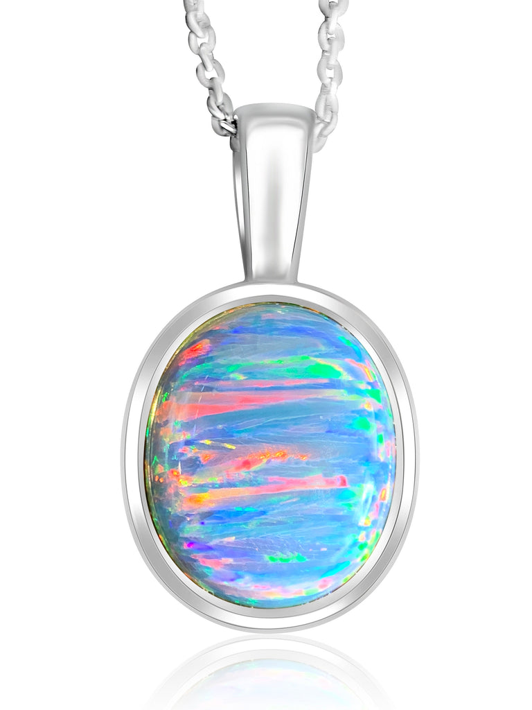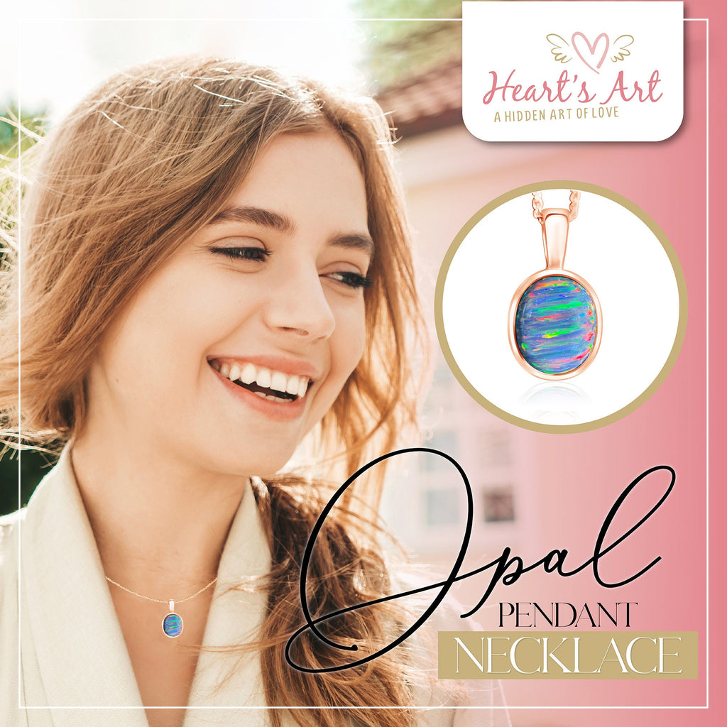 Heart's Art Australia- Play of Colour - Sterling Silver Created 12x10mm Solid Fire Turquoise Opal bezel set pendant- Great Gift for women!
