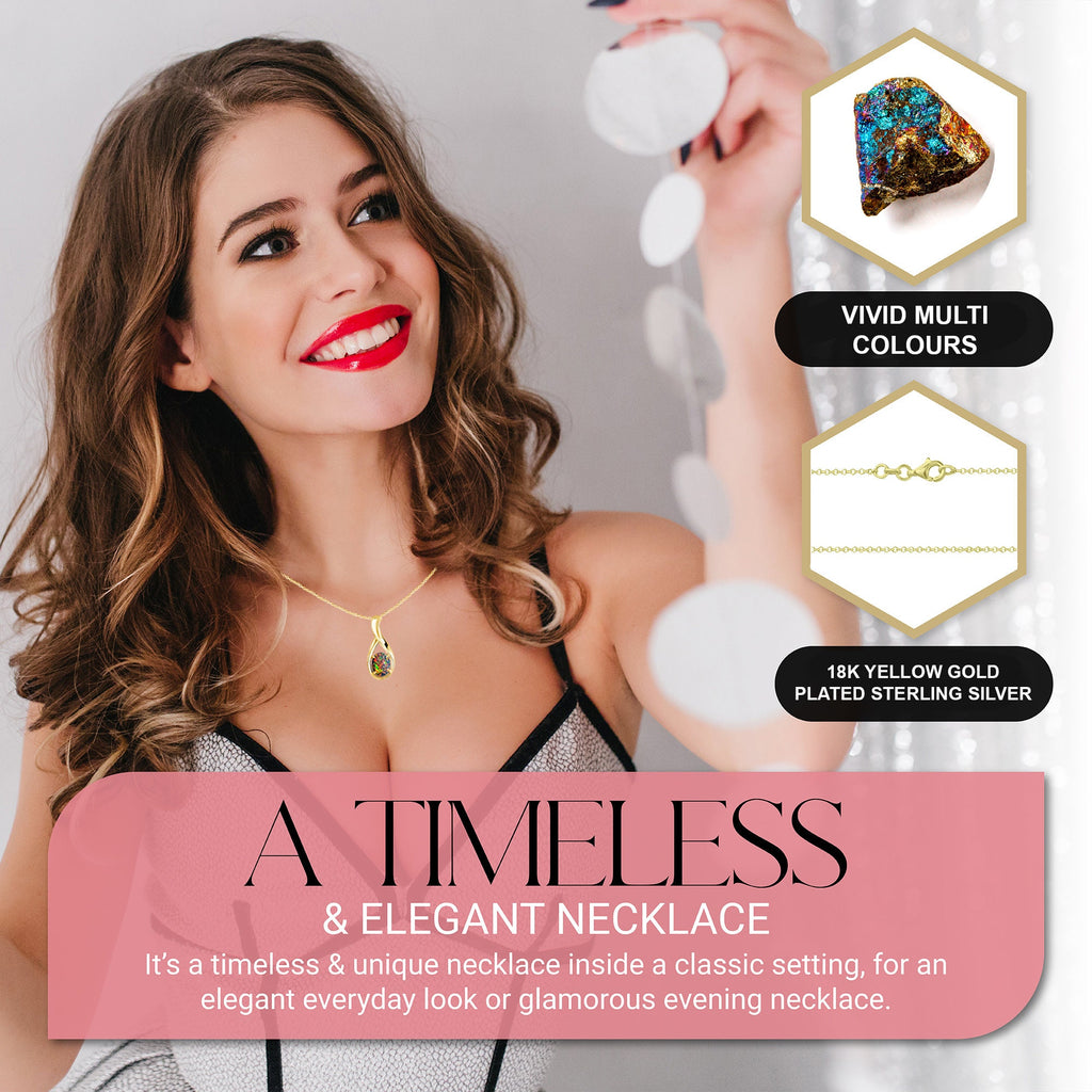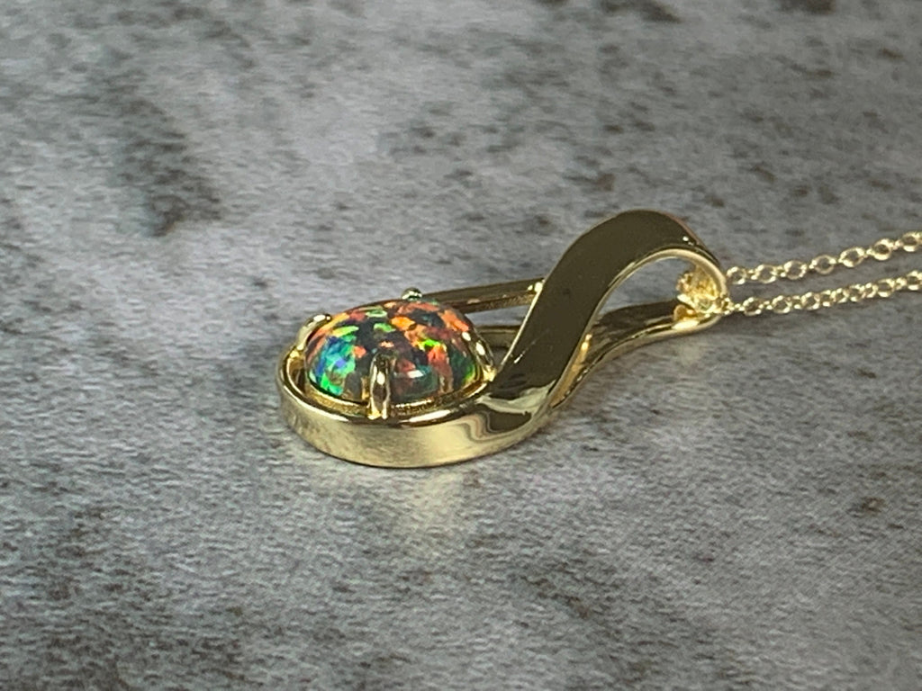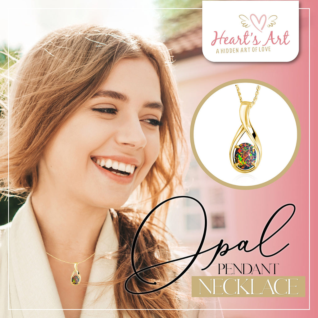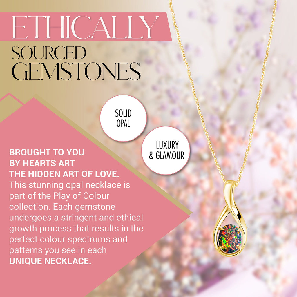 Heart's Art Australia- Play of Colour - Sterling Silver Created Solid Fire Black Opal infinity plated Gold Necklace- Great Gift for women!