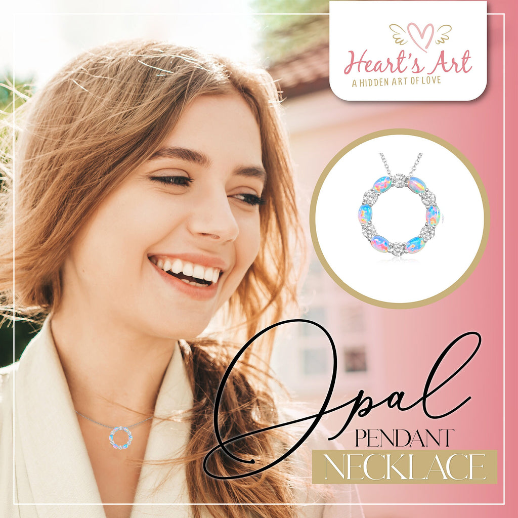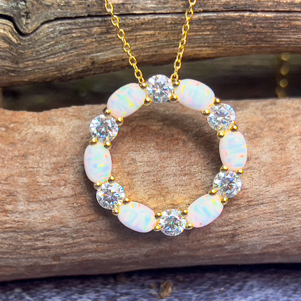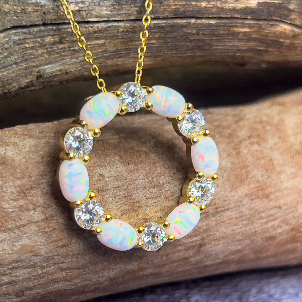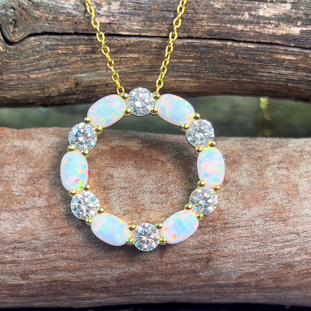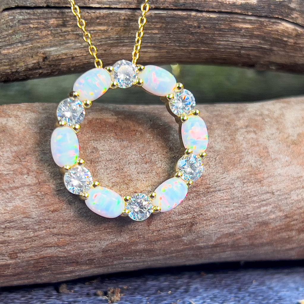Play of Colour Australia- Large Circle of Life 40mm Gold plated Sterling Silver Created 6x4mm Solid White Red Teal Blue Opal Circle Necklace