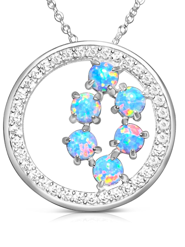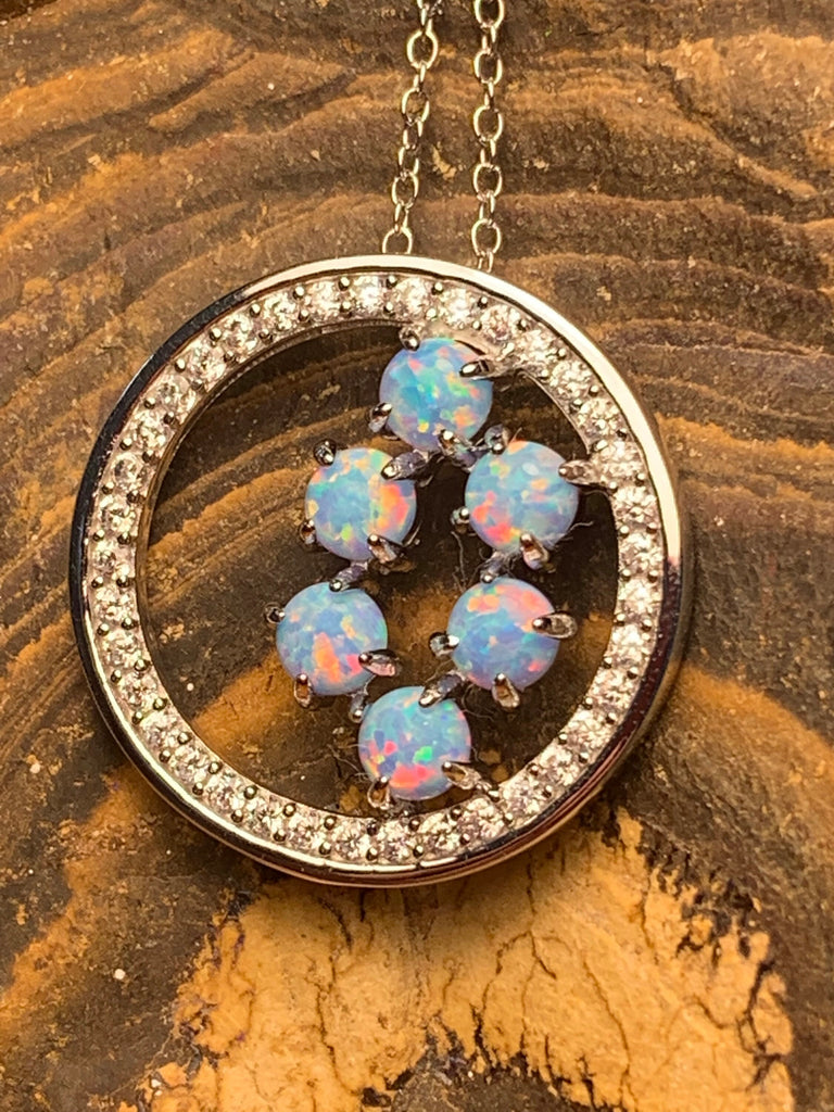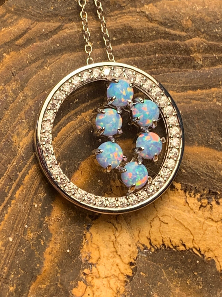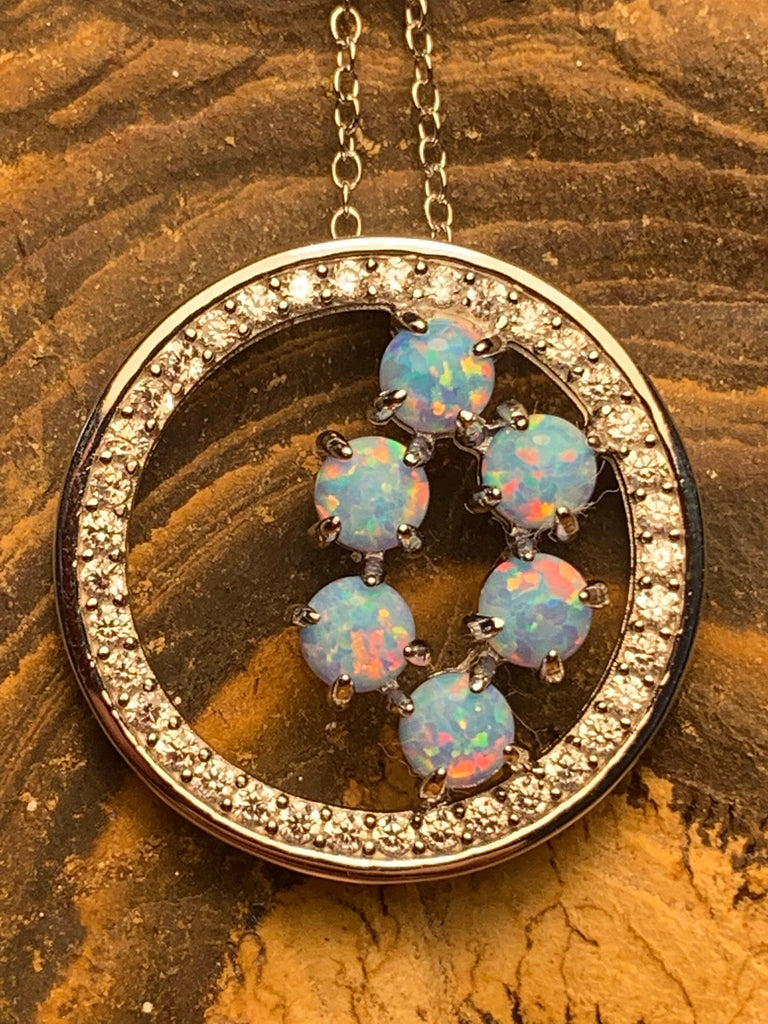 Heart's Art Australia- Play of Colour- Large 40mm Sterling Silver Galaxy Waterfall Created 10x8mm Solid Turquoise Fire Opal Circle pendant-