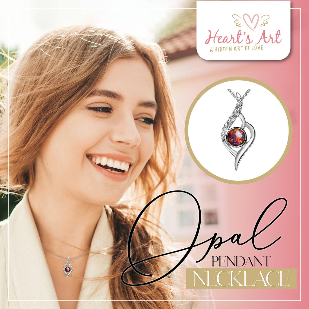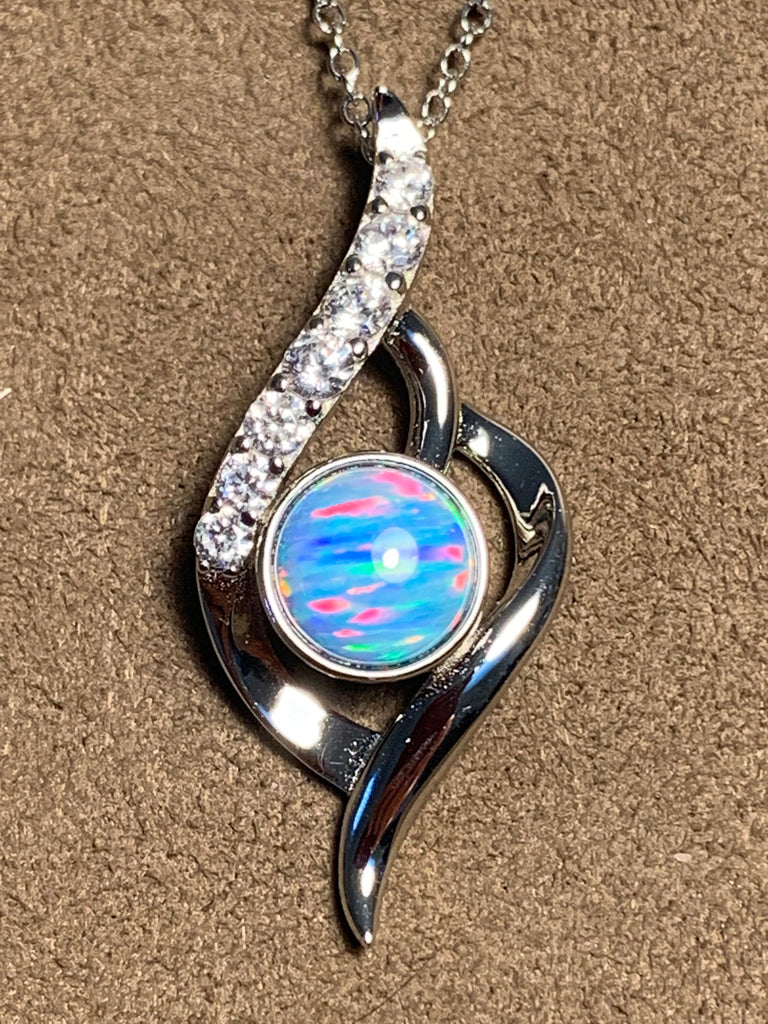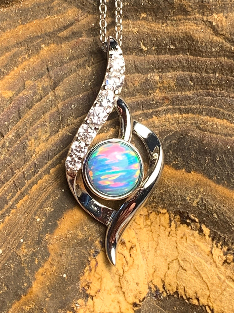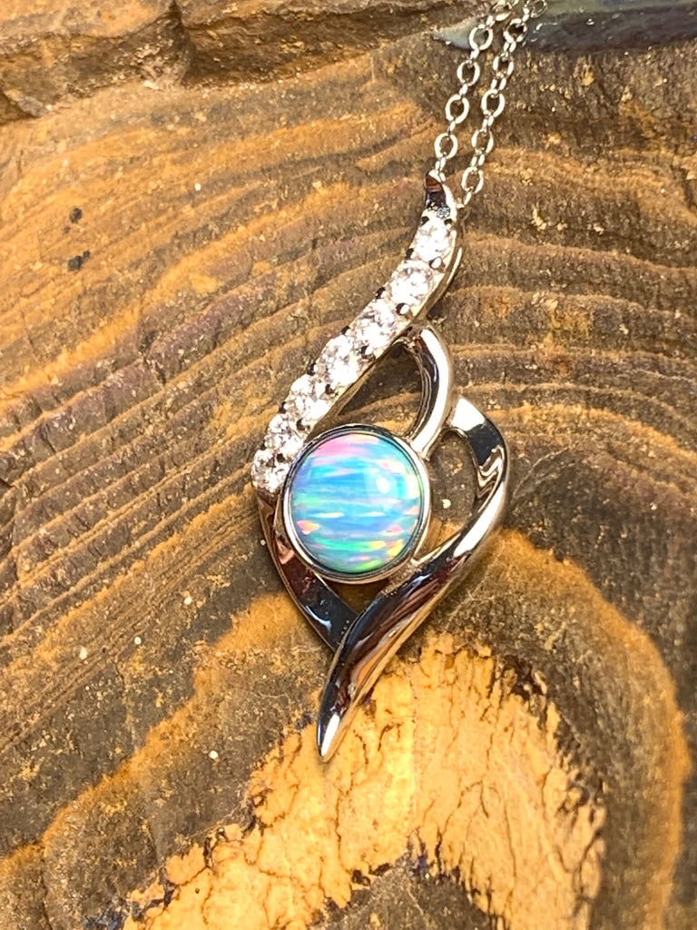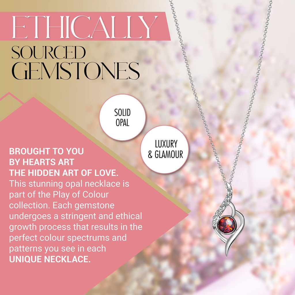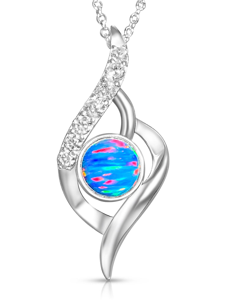 Heart's Art Australia-Play of Colour-Sterling Silver Necklace Modern Created 7mm Solid Turquoise Fire Opal pendant- Perfect Gift for women