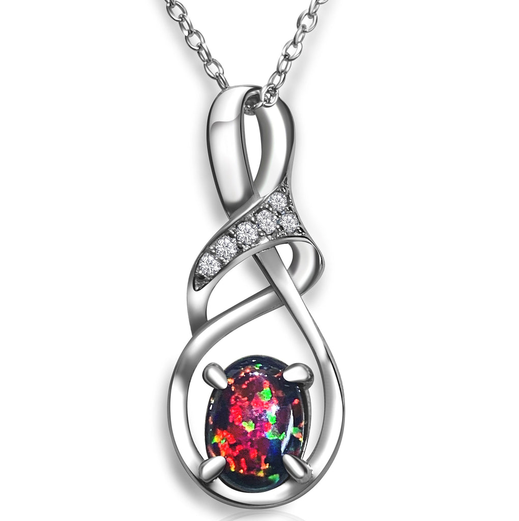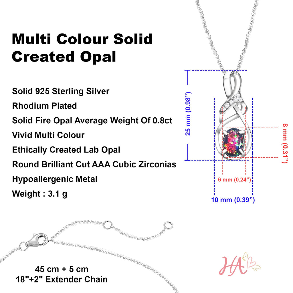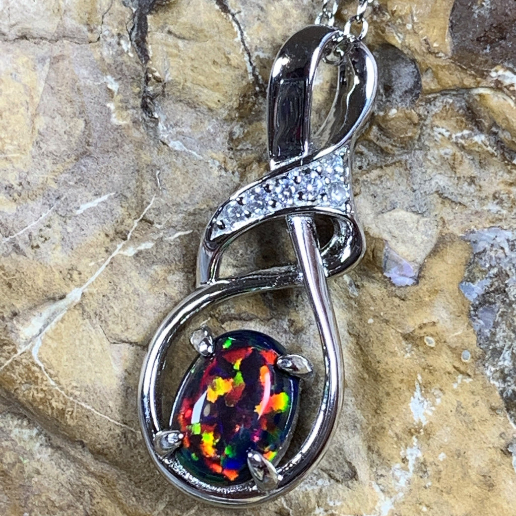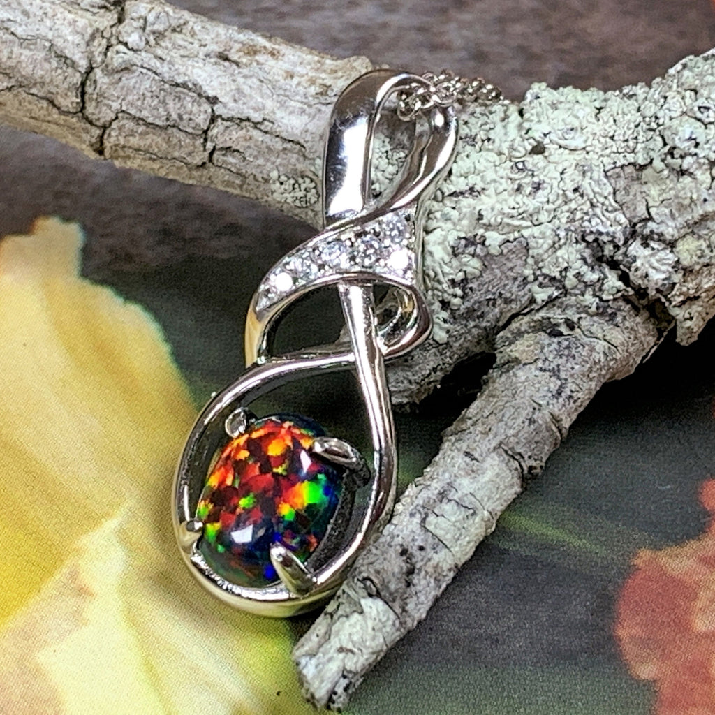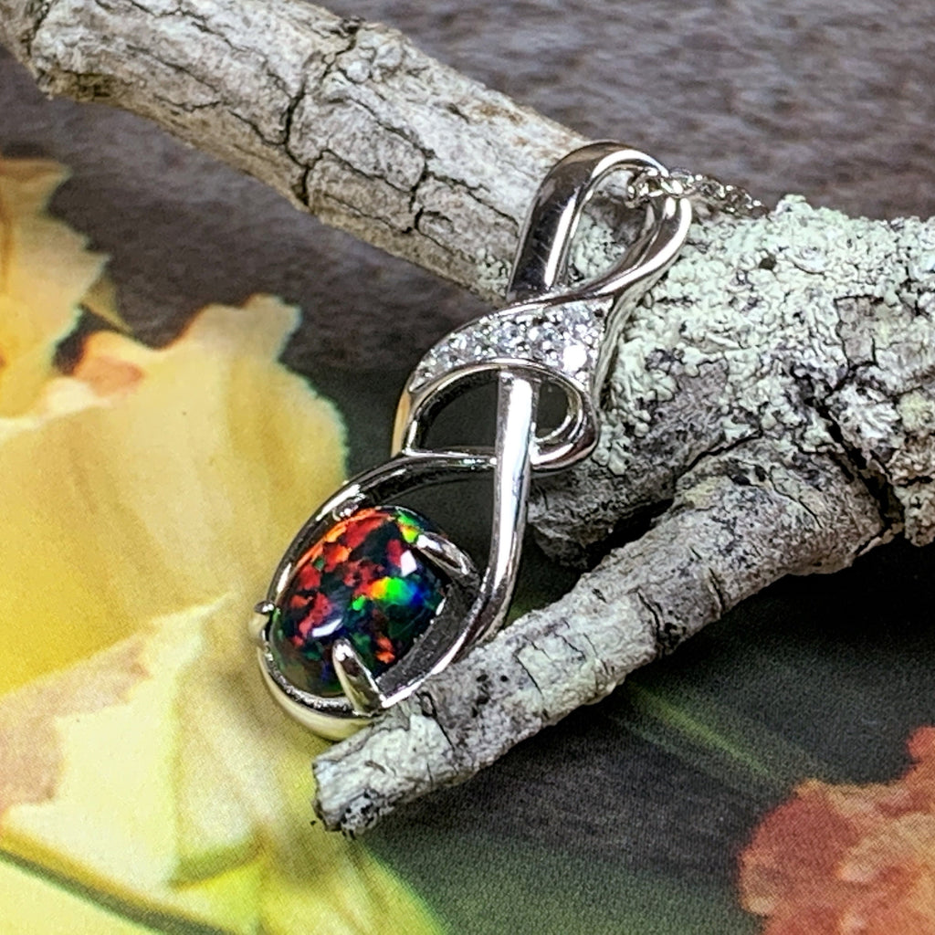 Heart's Art Australia- Play of Colour- Sterling Silver Necklace Swirl Created 8x6mm Solid Red Black Opal pendant- Perfect Gift for a women!
