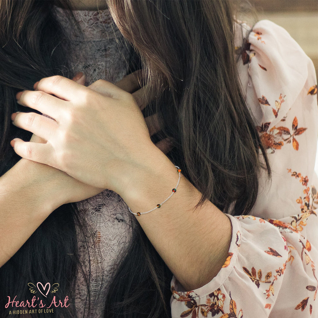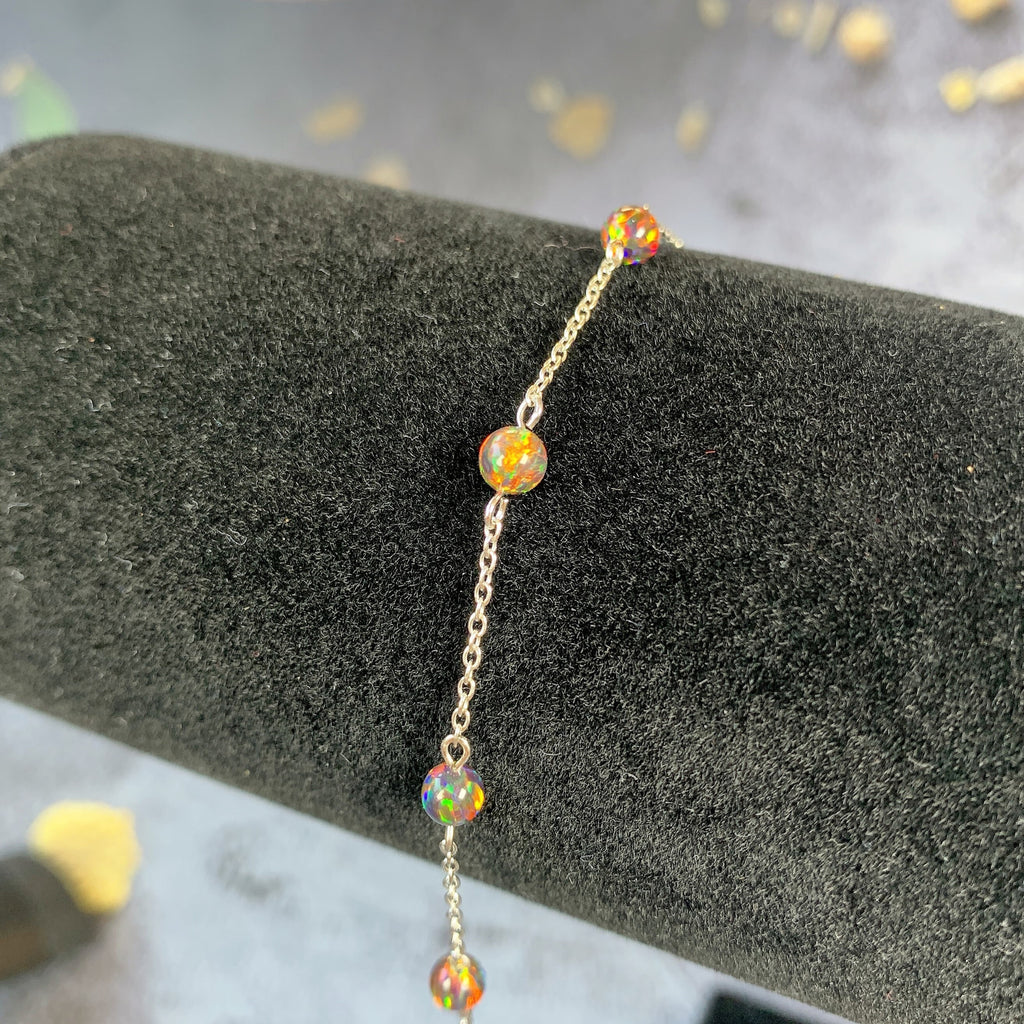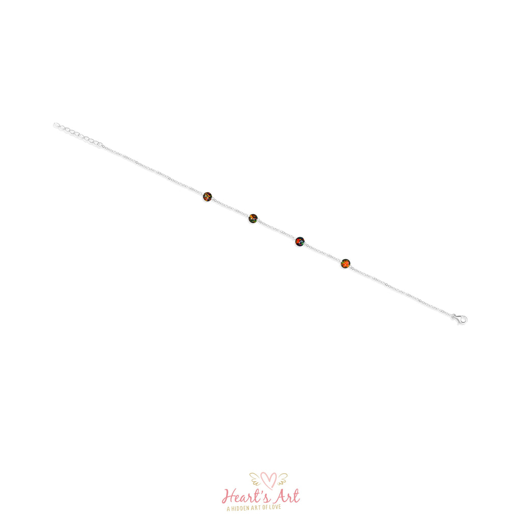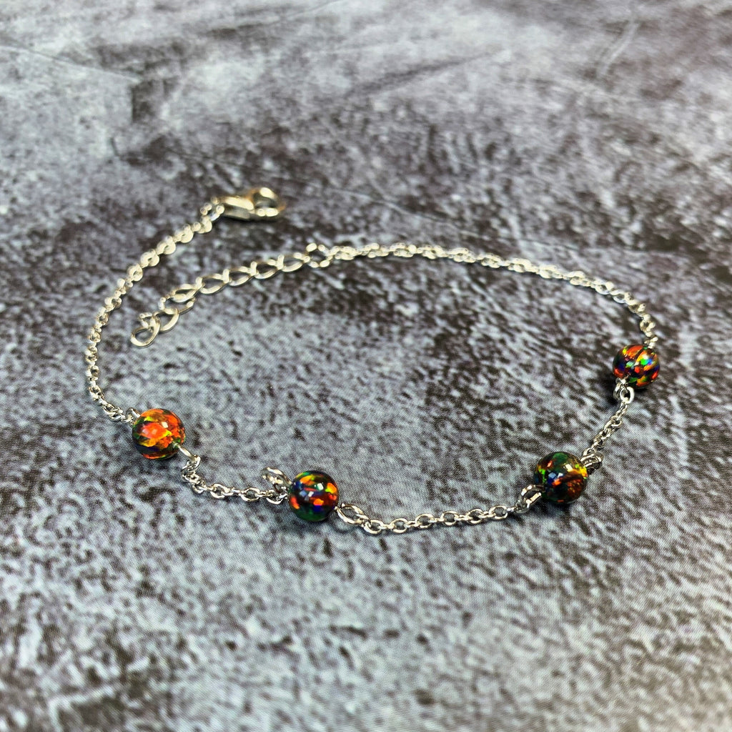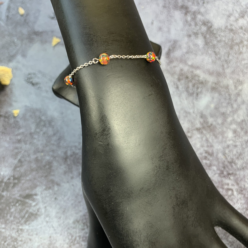 Heart's Art Australia- Sterling Silver bead bracelet 4mm Solid Multi Colour Red Black Opal spaced minimalist bracelet- Great Gift