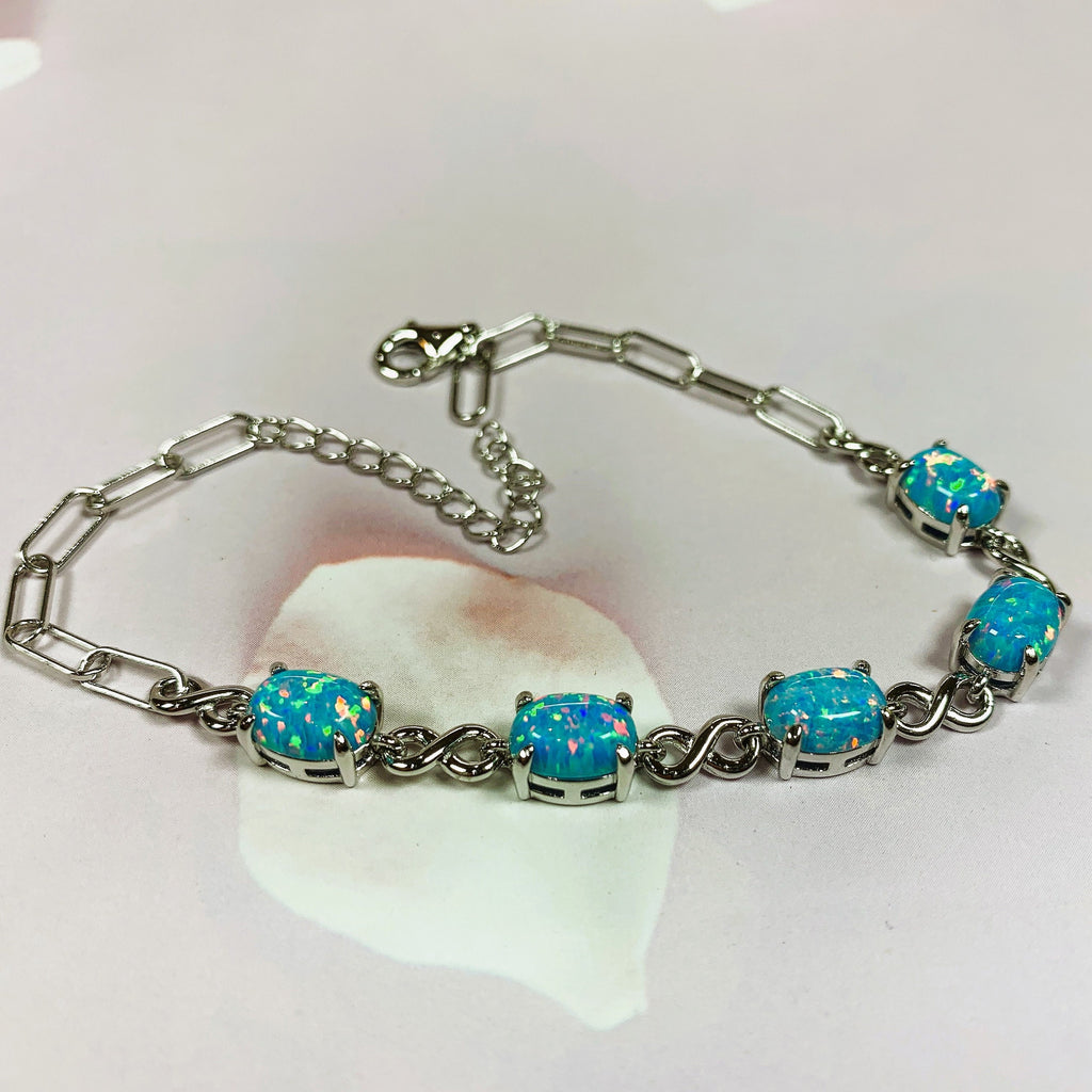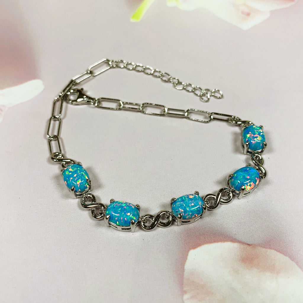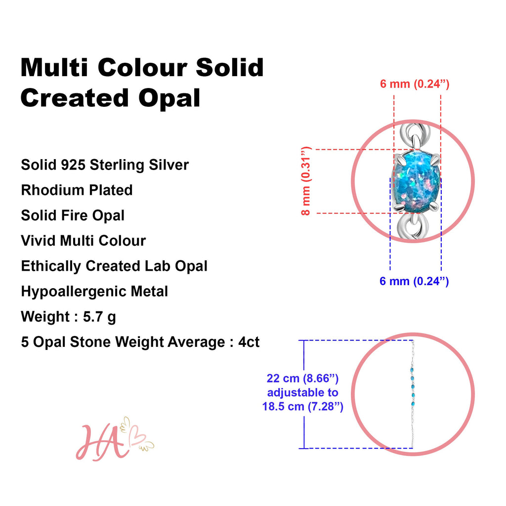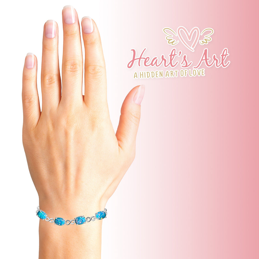 Heart's Art Australia- Sterling Silver Created 8x6mm Solid Multi Colour Blue Turquiose Fire Opal claw set infinity bracelet- Great Gift