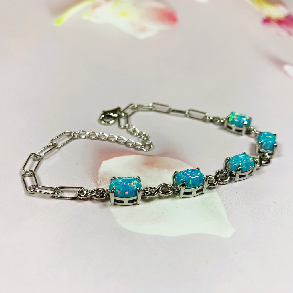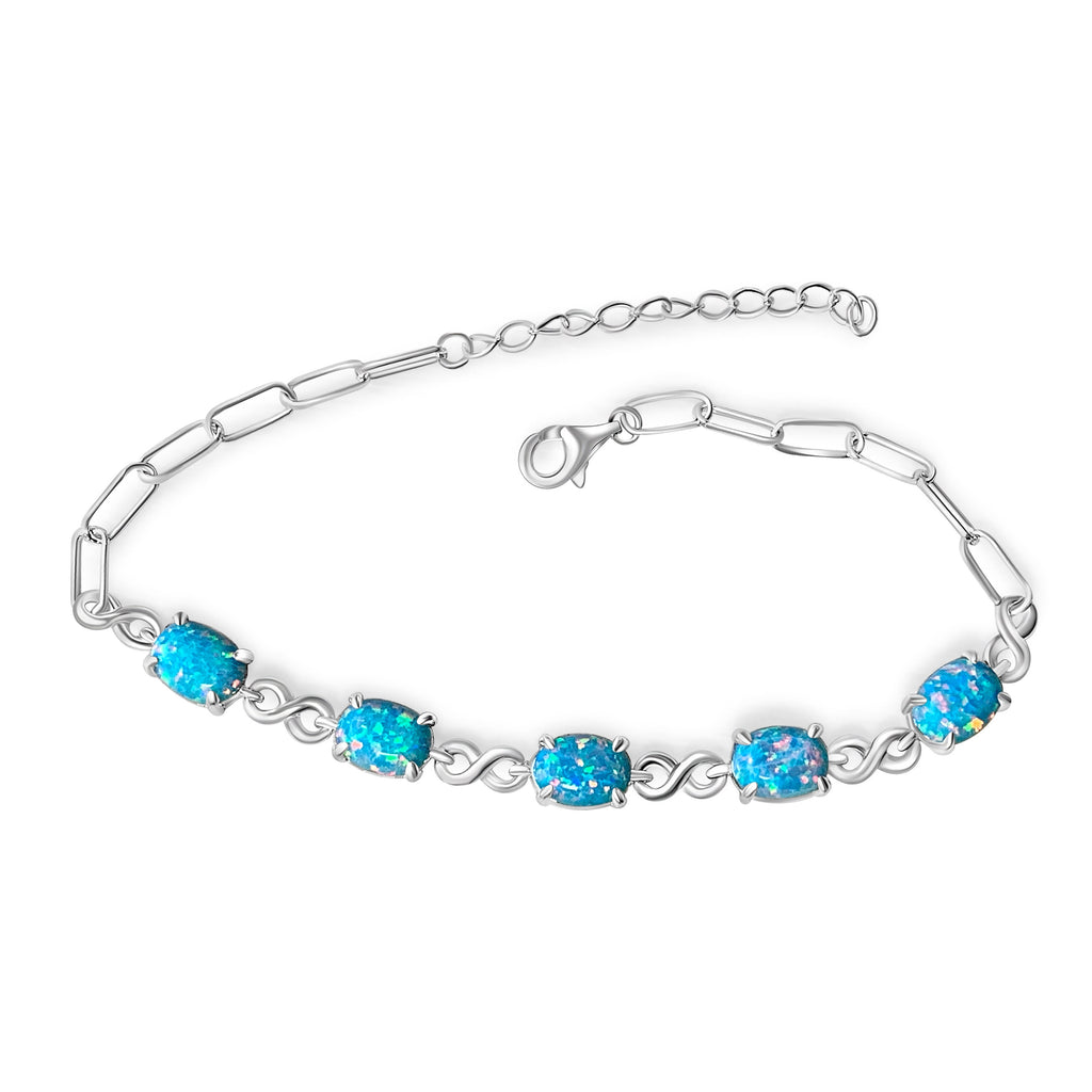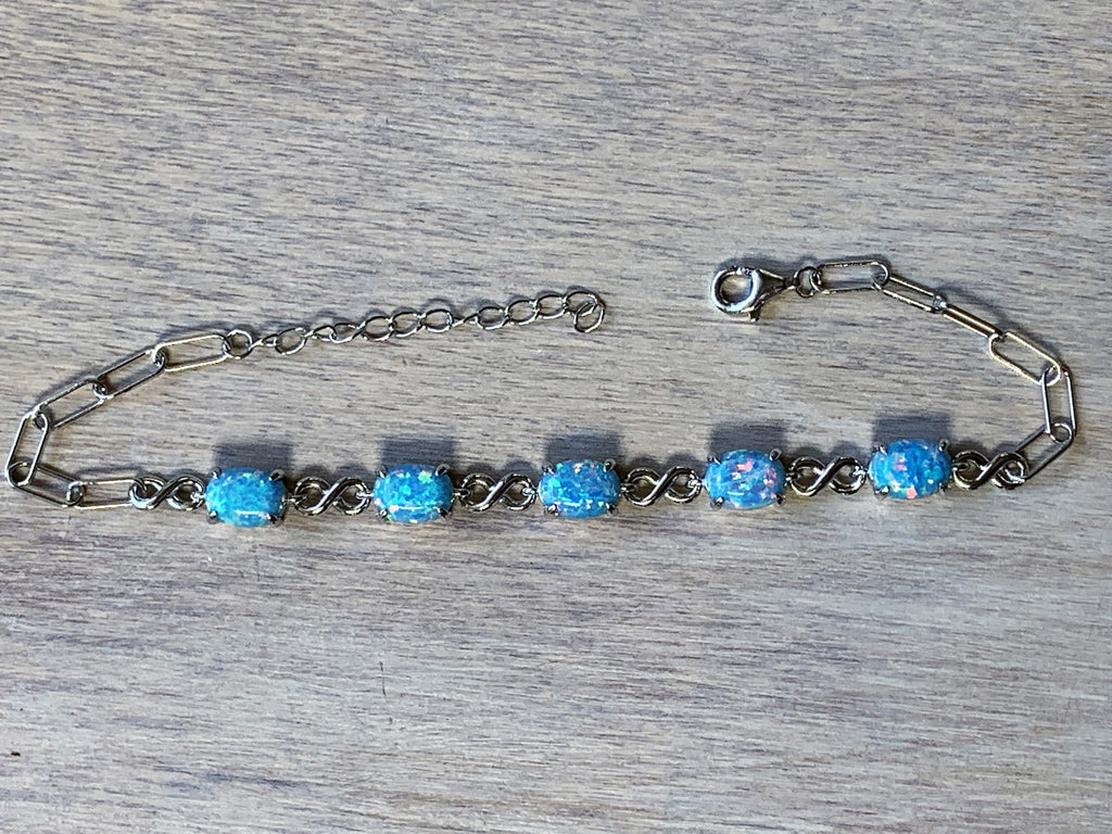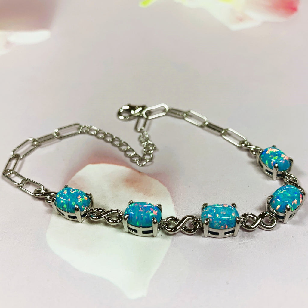 Heart's Art Australia- Sterling Silver Created 8x6mm Solid Multi Colour Blue Turquiose Fire Opal claw set infinity bracelet- Great Gift