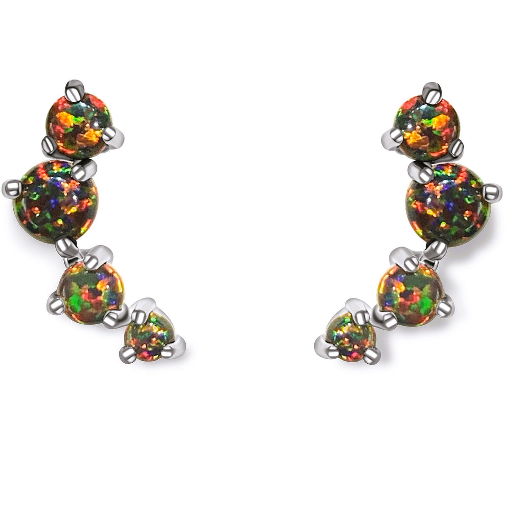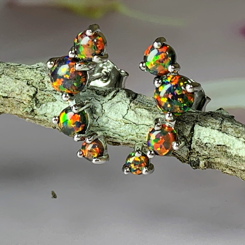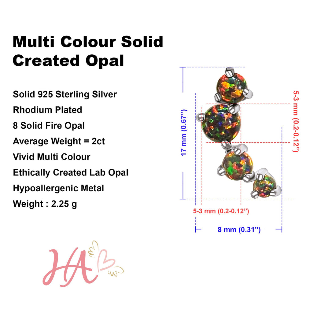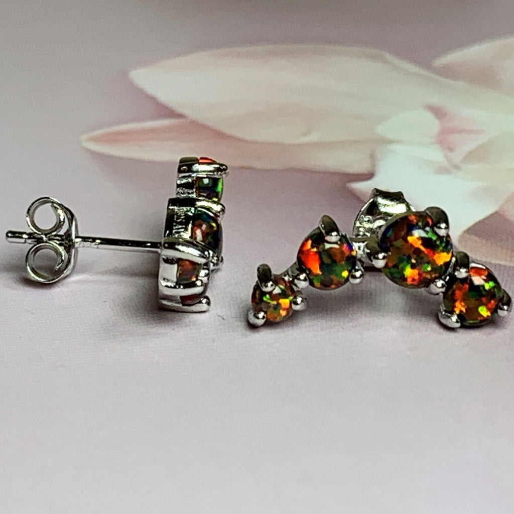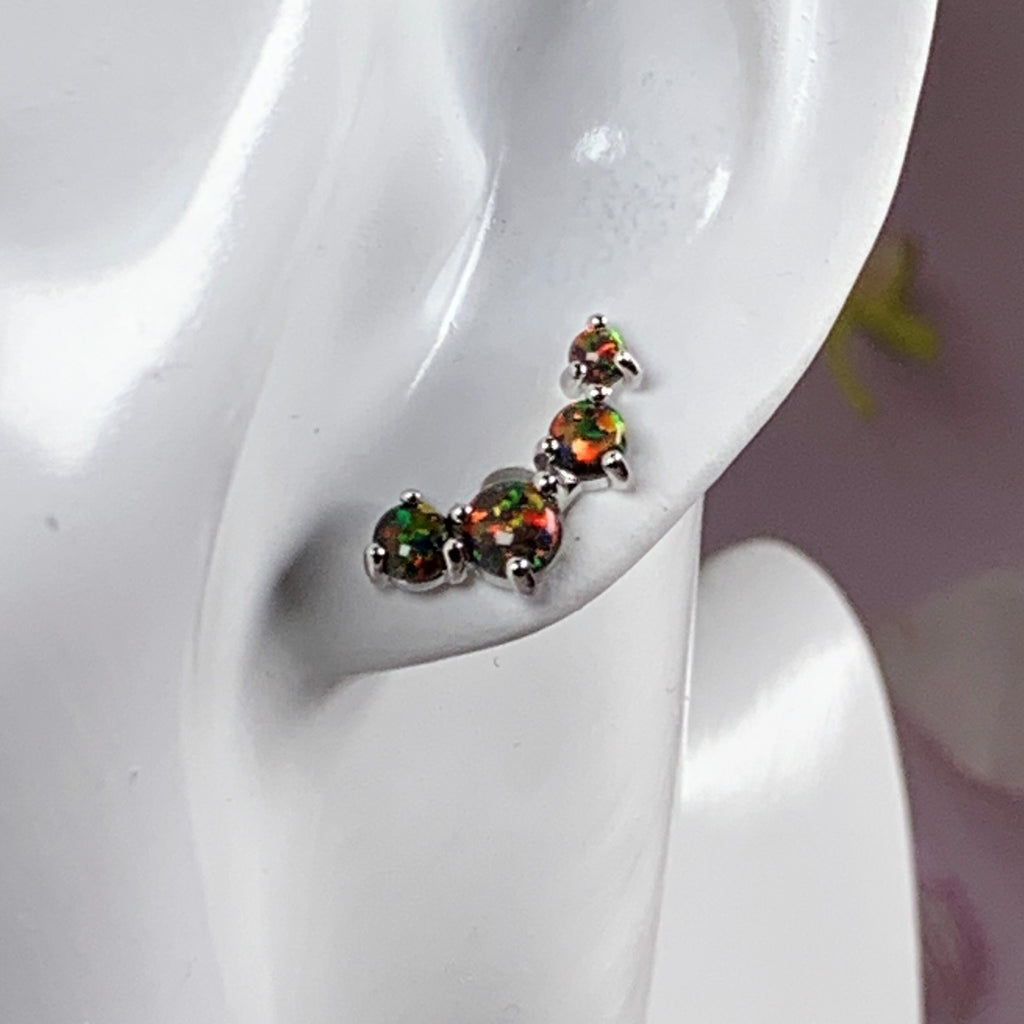 Heart's Art Australia- Sterling Silver Created Graduating Red Black Fire Opal crawler earrings- Great Gift for everyday wear