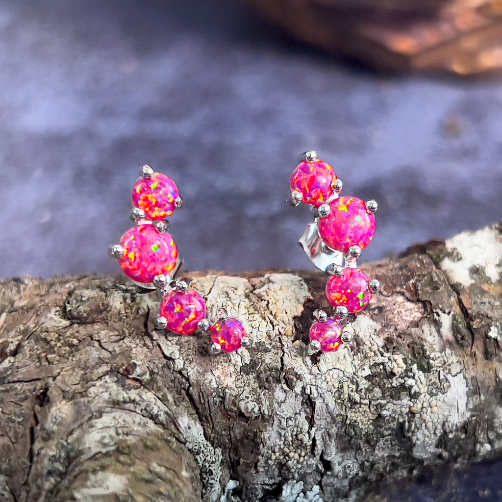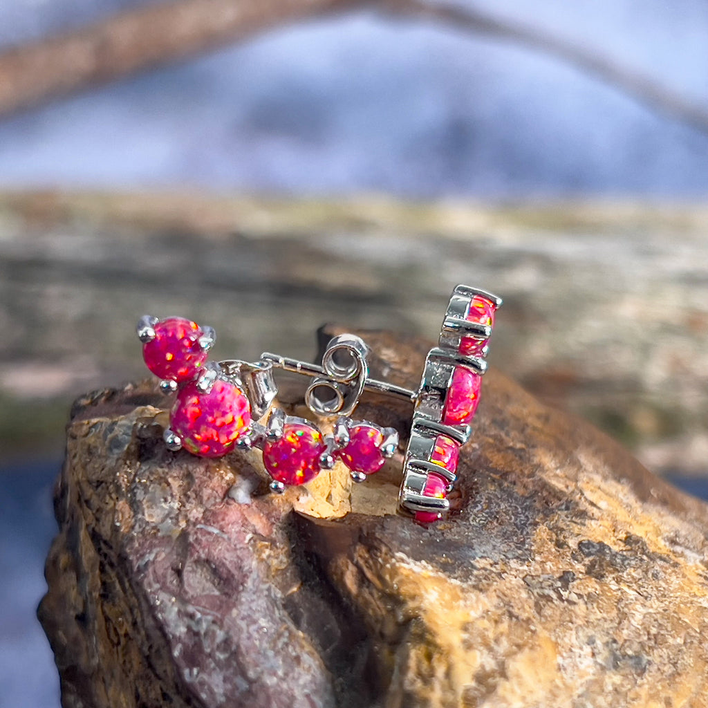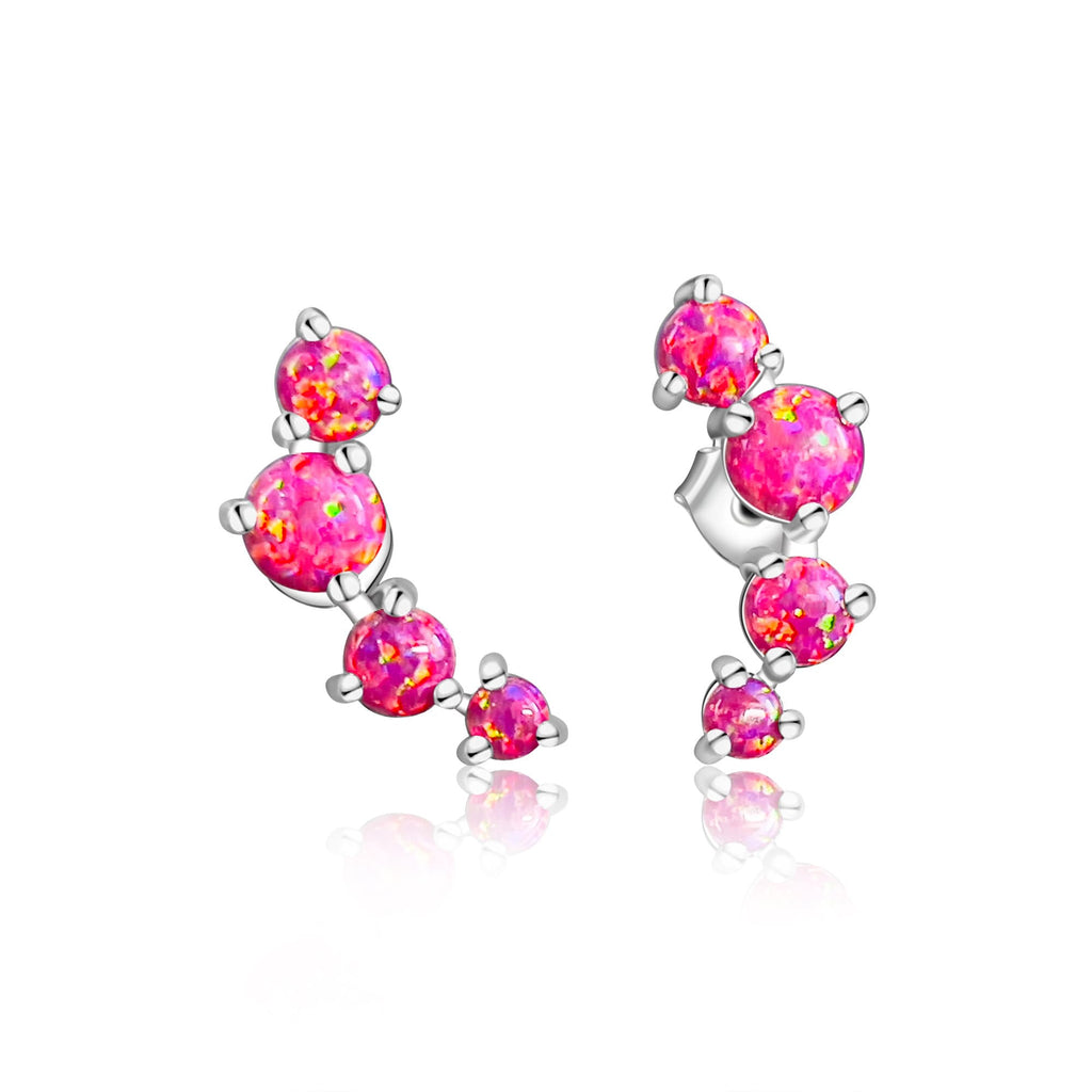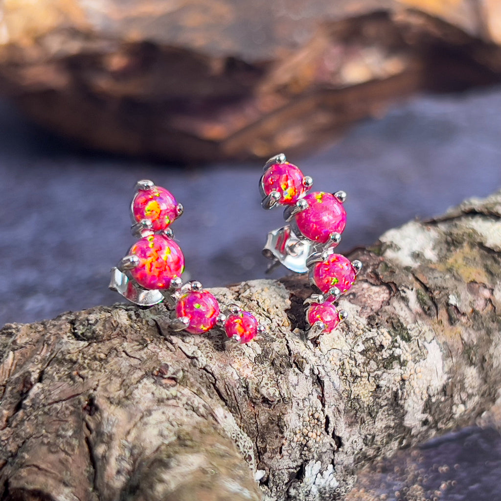 Play of Colour Australia- Sterling Silver Created Graduating Pink Opal crawler earrings- Great Gift for everyday wear