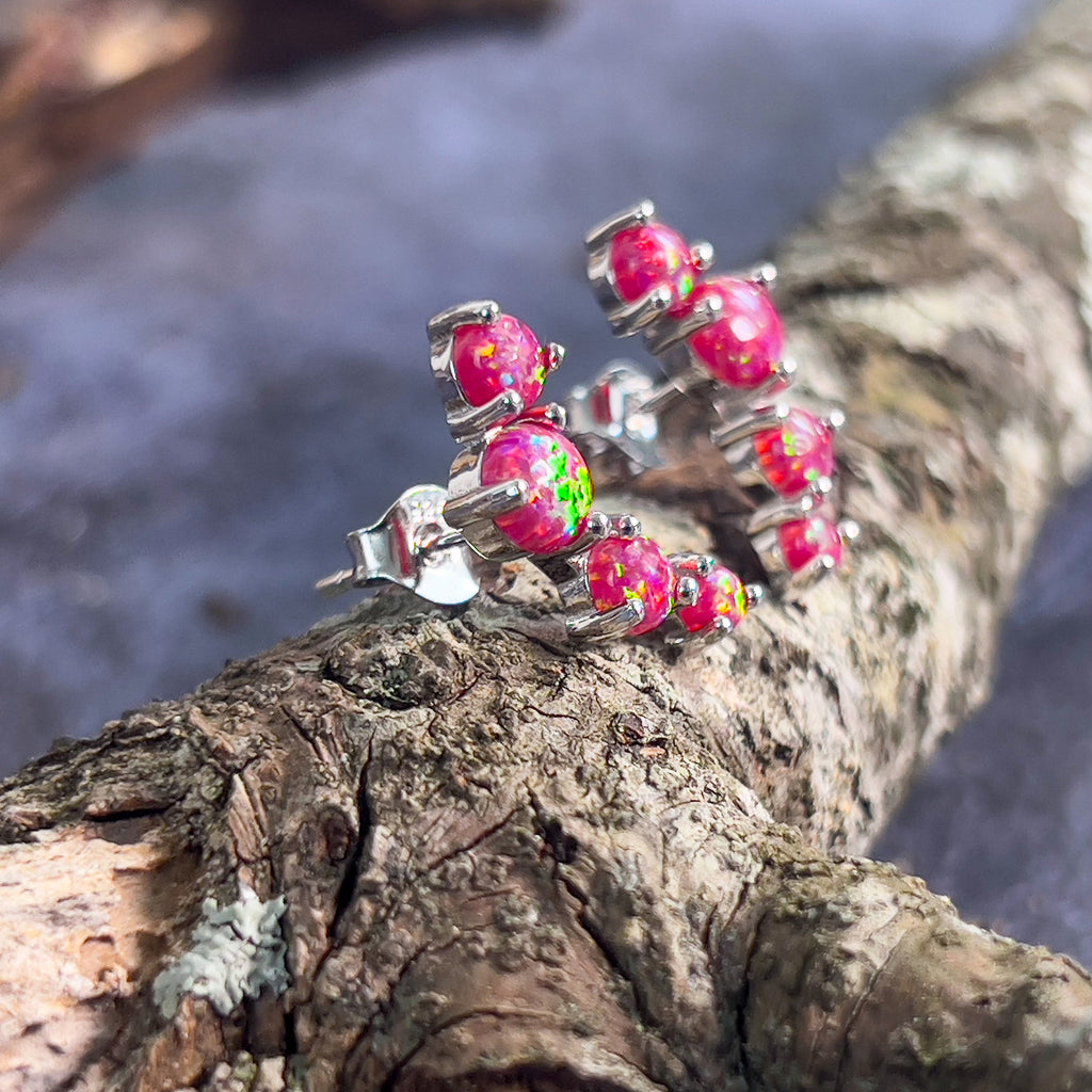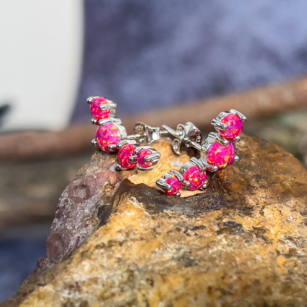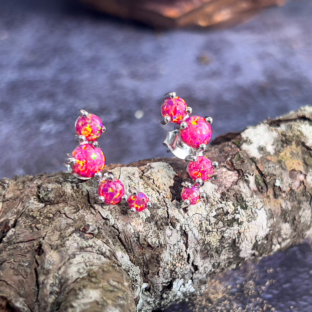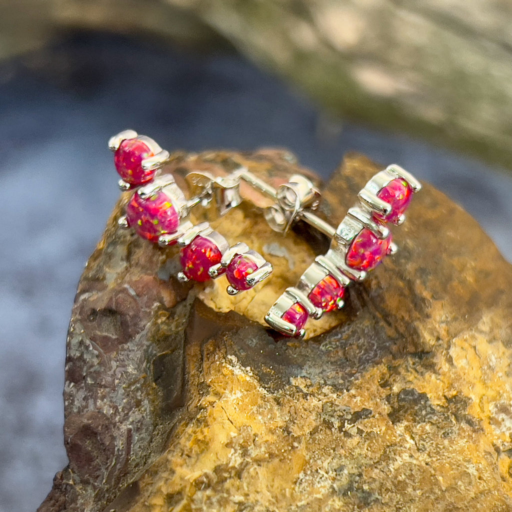 Play of Colour Australia- Sterling Silver Created Graduating Pink Opal crawler earrings- Great Gift for everyday wear