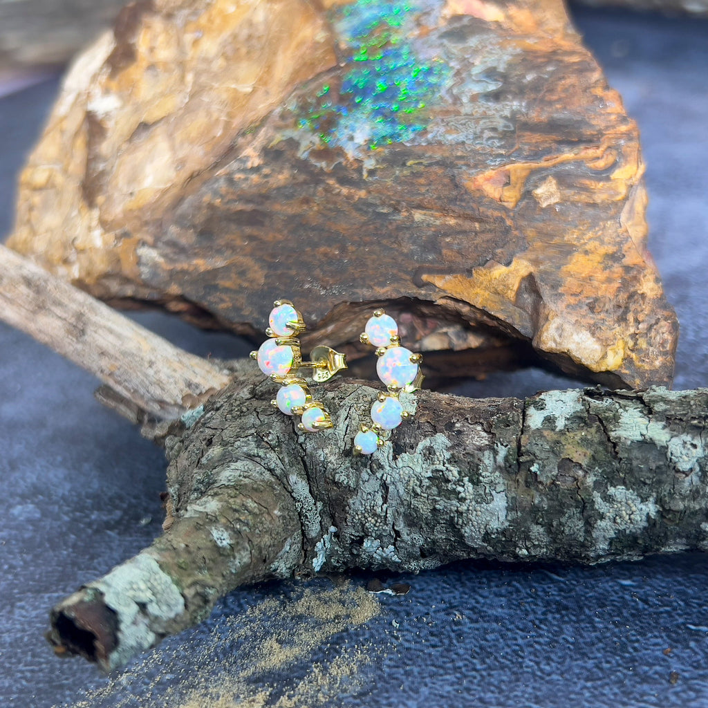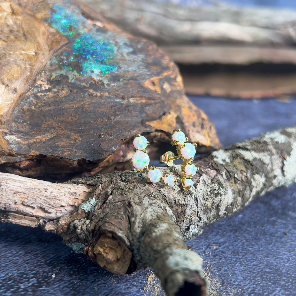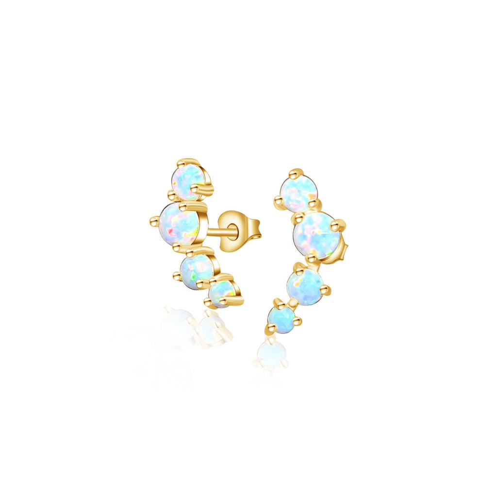 Play of Colour Australia - Sterling Silver Created Graduating White Fire Opal crawler earrings- Great Gift for everyday wear