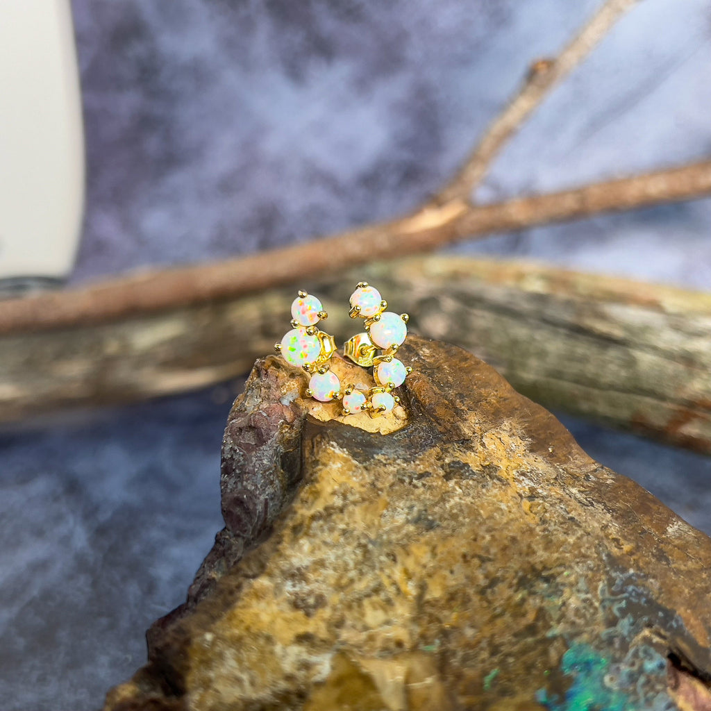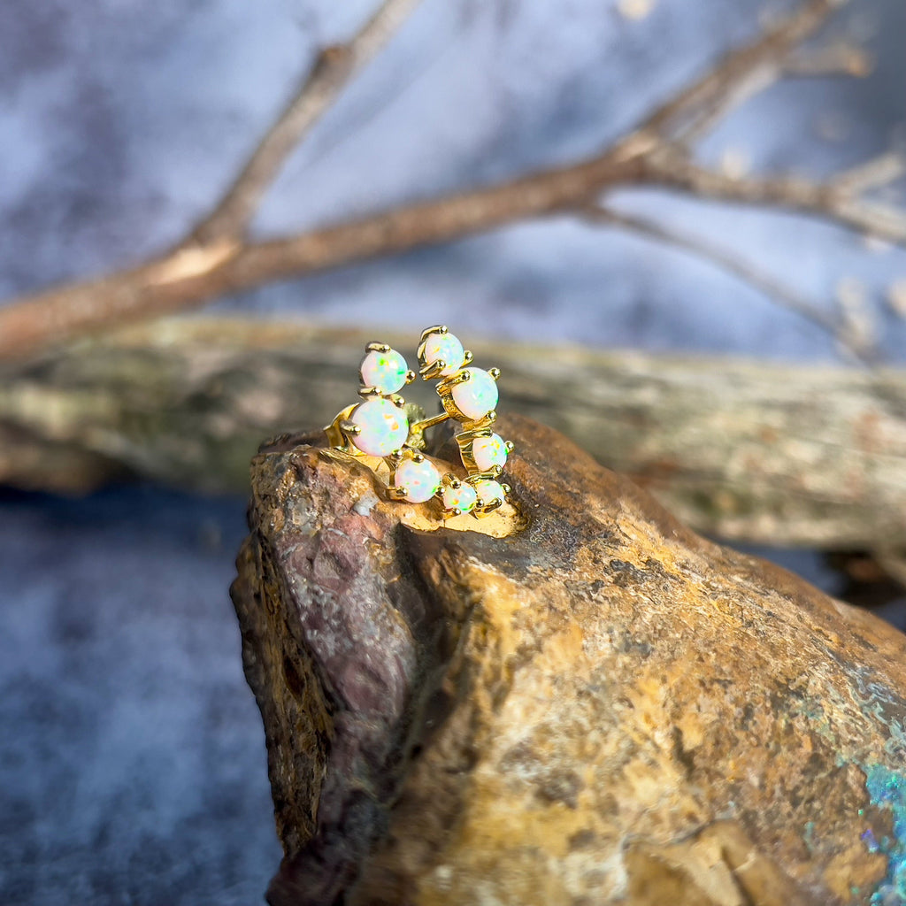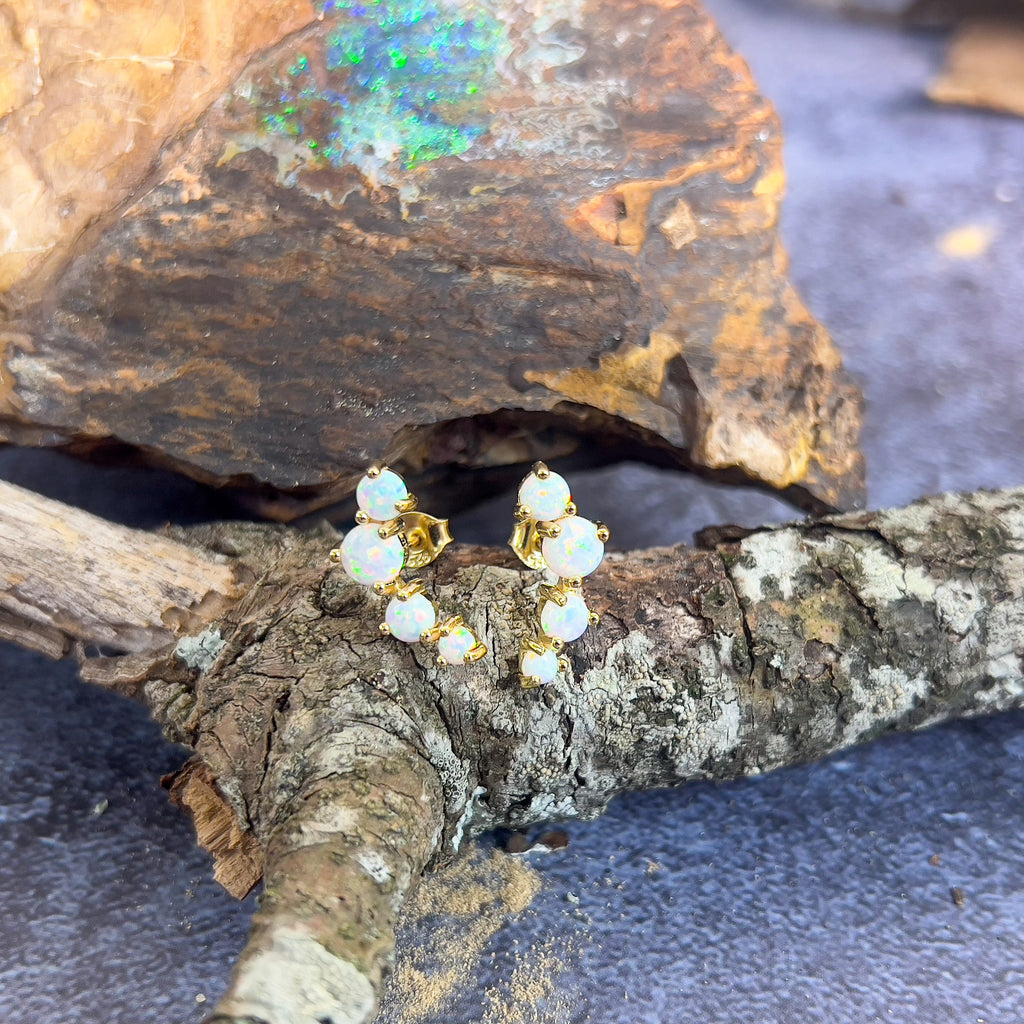 Play of Colour Australia - Sterling Silver Created Graduating White Fire Opal crawler earrings- Great Gift for everyday wear